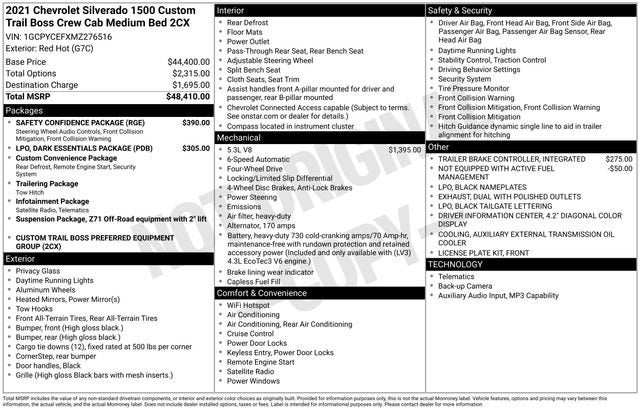 - Custom Trail Boss Preferred Equipment Group includes standard equipment